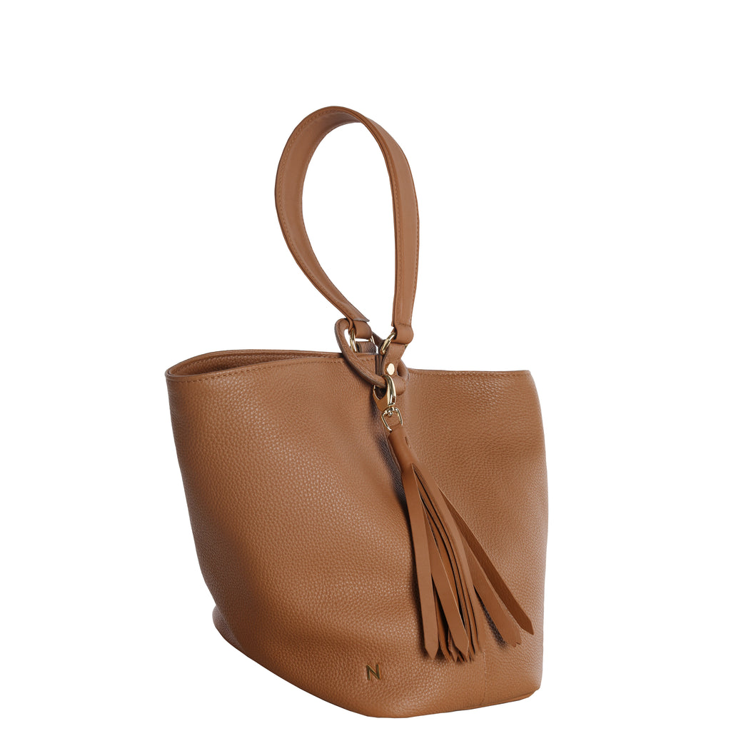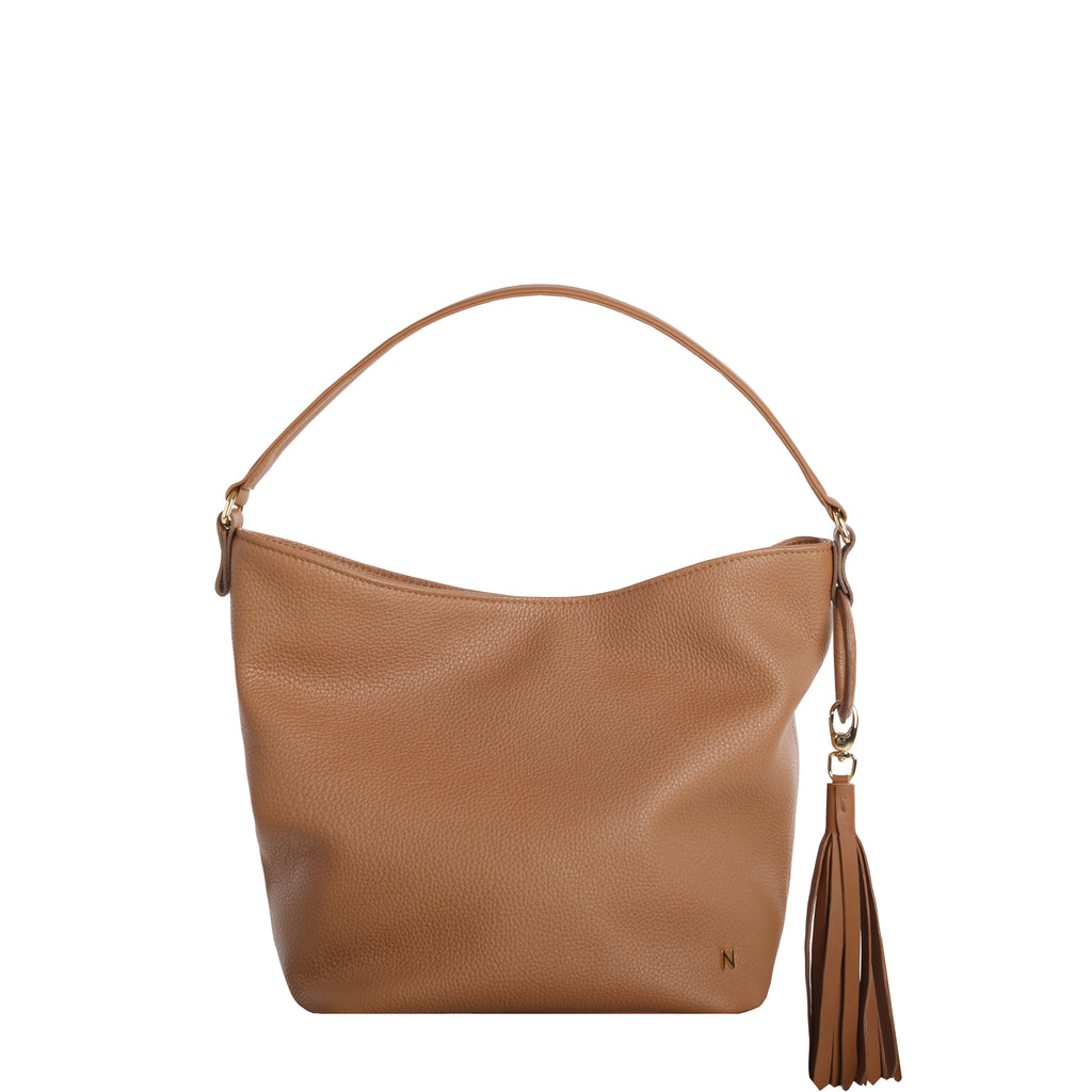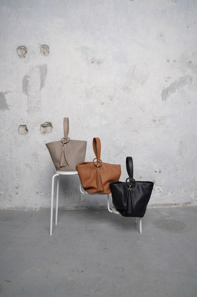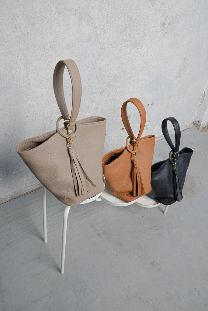 Torebka 2 w 1, która jest przykładem nowoczesnego podejścia marki NOVINSKA do klasyki. Ta średniej wielkości torebka na ramię wykonana została z mięsistej włoskiej skóry z fakturą groszku. Miękko układa się do ciała, ale ma wzmocnione prostokątne dno, dzięki któremu utrzymuje kształt. Torebkę można nosić na dwa sposoby dzięki sprytnemu przepięciu rączki przez dekoracyjne kółko obszyte skórą. Uzyskuje się w ten sposób zupełnie nowy, oryginalny kształt. Przełamana klasyka na lata. Ozdobiona dekoracyjnym skórzanym chwostem.