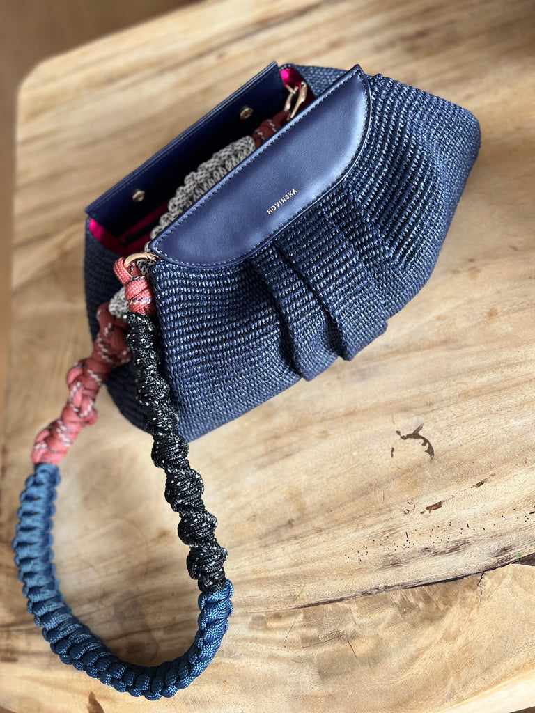 Pleciony pasek do torebki. Odkryj urok naszych ręcznie wyplatanych pasków ze sznurków będących owocem współpracy z artystką z Hiszpanii. Każdy z nich to oryginalne dzieło sztuki stworzone z pasji do rękodzieła. Taki pasek do torebki to nie tylko wyraz autentycznego rzemiosła, ale unikatowy dodatek, który przekształci każdą, nawet najbardziej klasyczną torebkę, w wyjątkowy element garderoby. Długi pasek można nosić na skos lub na ramieniu i jest wygodny. Zapinany na kółka-karabinczyki z logo SOLECKA X NOVINSKA.