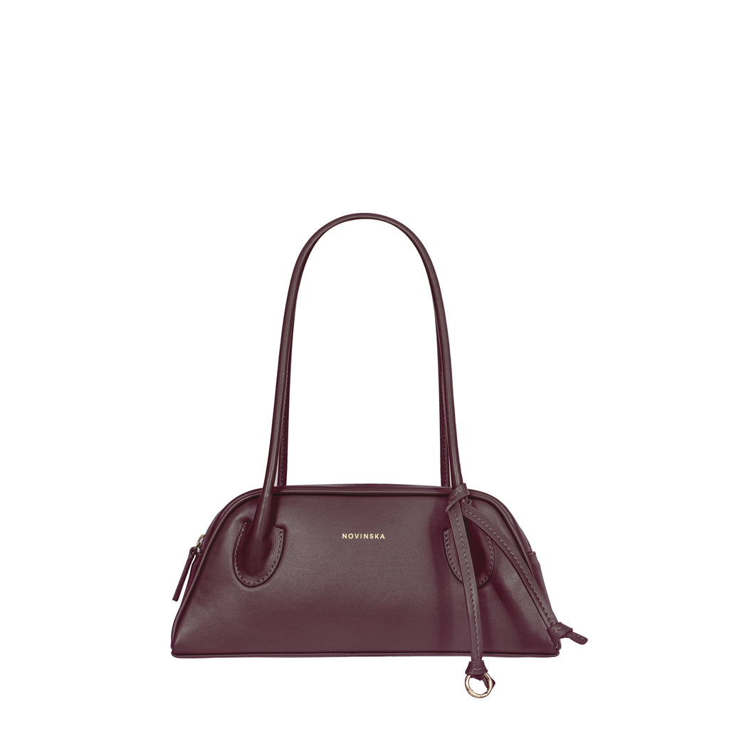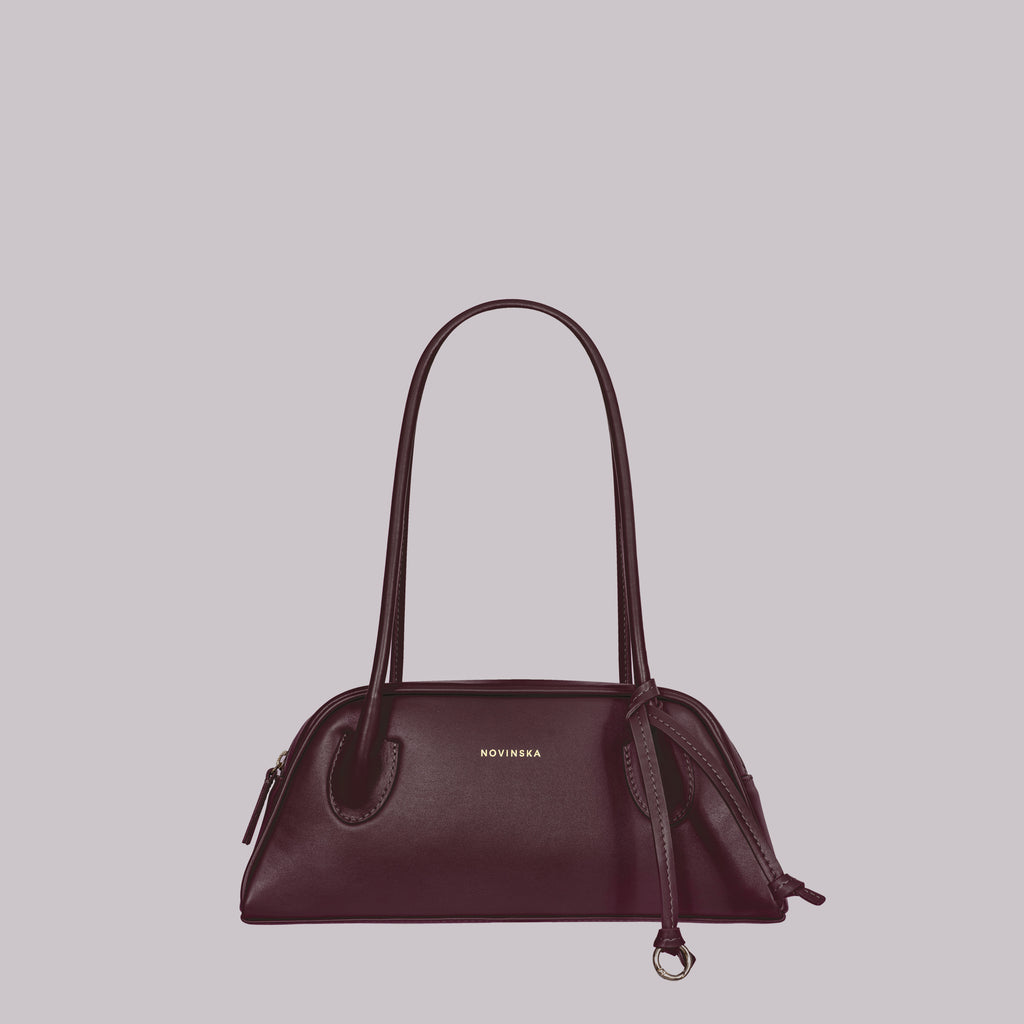 Torebka o trapezowym kształcie, inspirowana sylwetkami lat 90., to połączenie najnowszych trendów z ponadczasową elegancją. Wykonana z gładkiej skóry w kolorze głębokiego wina i wykończona biżuteryjnym suwakiem w złotym kolorze, zachwyca prostotą wyrafinowanego stylu oraz perfekcyjnym wykończeniem. Jej wygodne, długie rączki na ramię są dopracowane w duchu najlepszych technik kaletnictwa, co zapewnia nie tylko komfort noszenia, ale i wyjątkowy charakter. Torebka zapinana na suwak, szeroko się otwiera, ułatwiając dostęp do wnętrza. Subtelnym, ale efektownym akcentem jest ozdobny rzemyk zakończony kółkiem.