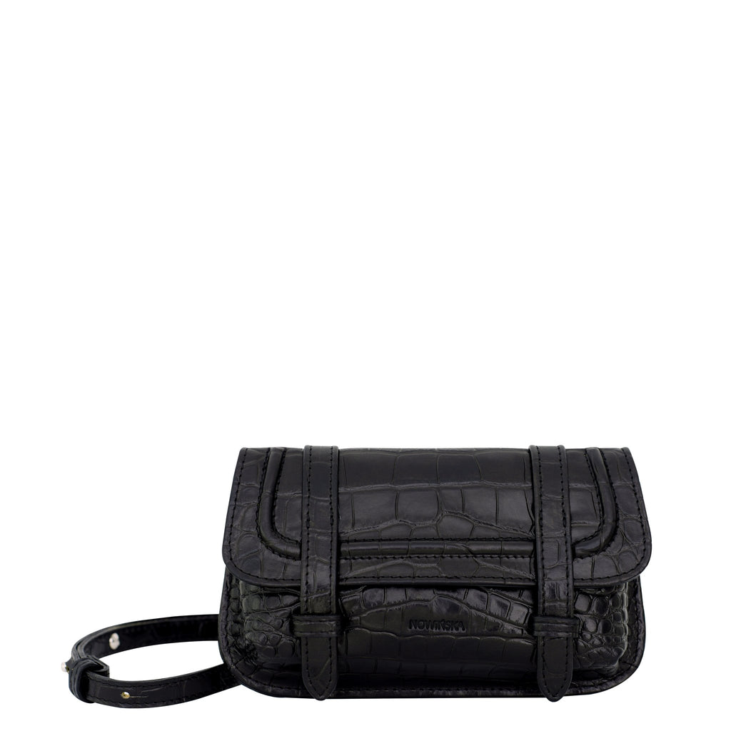 Mini torebka No. 108 może być stylizowana na 2 sposoby: noszona w talii/ na biodrach jak nerka lub na skos. Długość paska jest regulowana. Wykonana została z najwyższej jakości skóry we wzór krokodyla. Ponadczasowy klasyk na lata, który doda pazura każdej stylizacji.